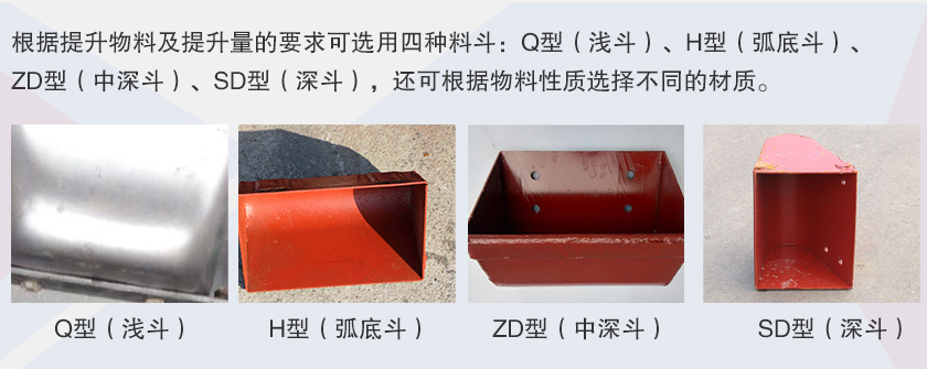 td400斗式提升機(jī)斗寬為400mm的一種斗式提升機(jī),采用橡膠帶作為其傳動部分,其帶寬為500mm,斗速為1.8m/s,普通皮帶的斗式提升機(jī)正常輸送高度一般不會超過20米,鋼絲繩芯的皮帶斗式提升機(jī)的輸送高度高達(dá)80米。根據(jù)提升物料及提升量的要求可選用四種料斗:Q型(淺斗)、H型(弧底斗)、ZD型(中深斗)、SD型(深斗),還可根據(jù)物料性質(zhì)選擇不同的材質(zhì)。