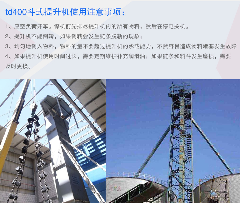 4、如果提升機(jī)使用時間過長,需要定期維護(hù)補(bǔ)充潤滑油;如果鏈條和料斗發(fā)生磨損,需要及時