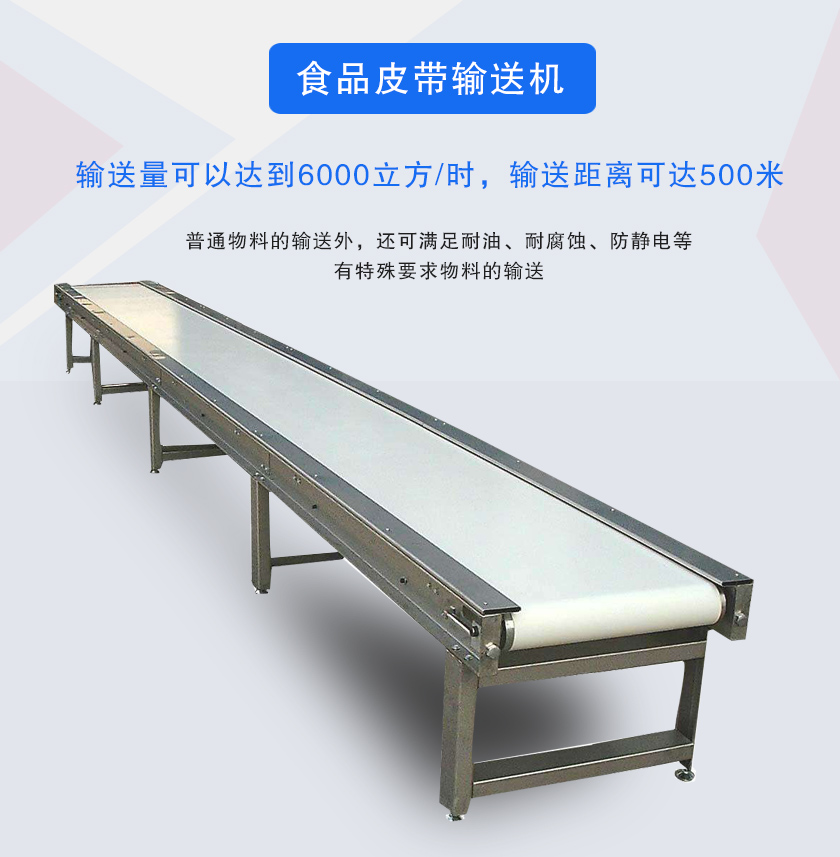 食品皮帶輸送機(jī)主要應(yīng)用于食品行業(yè),機(jī)架采用SUS304不銹鋼材質(zhì),輸送帶采用PU等材質(zhì),耐油,干凈衛(wèi)生,食品皮帶輸送機(jī)輸送長度達(dá)500米,可與其他設(shè)備配套使用.