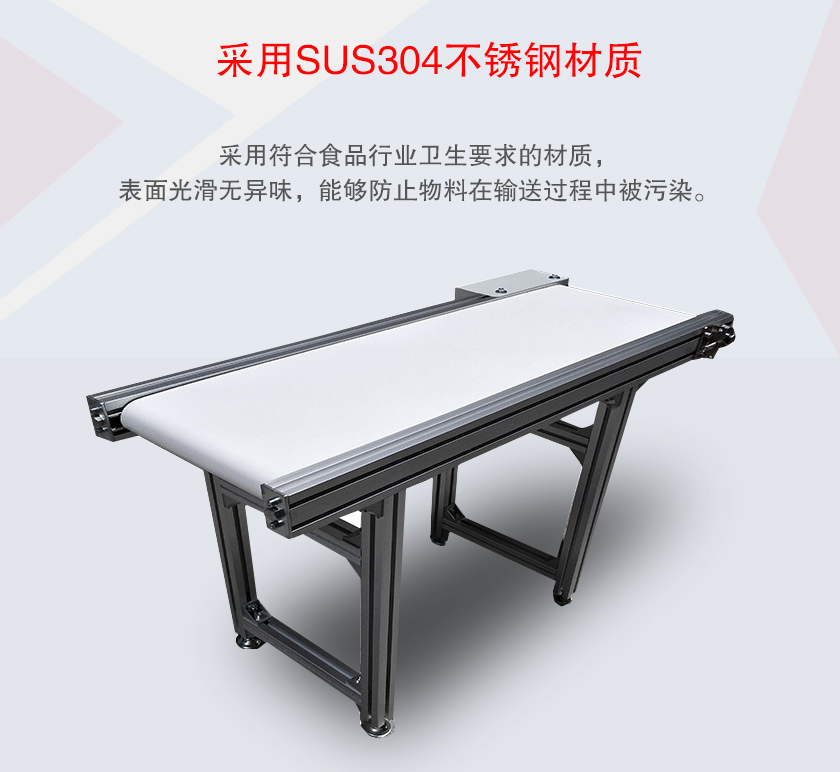 1、食品皮帶輸送機(jī)的機(jī)架采用SUS304不銹鋼材質(zhì),輸送帶采用符合食品行業(yè)衛(wèi)生要求的材質(zhì),表面光滑無異味,能夠防止物料在輸送過程中被污染。