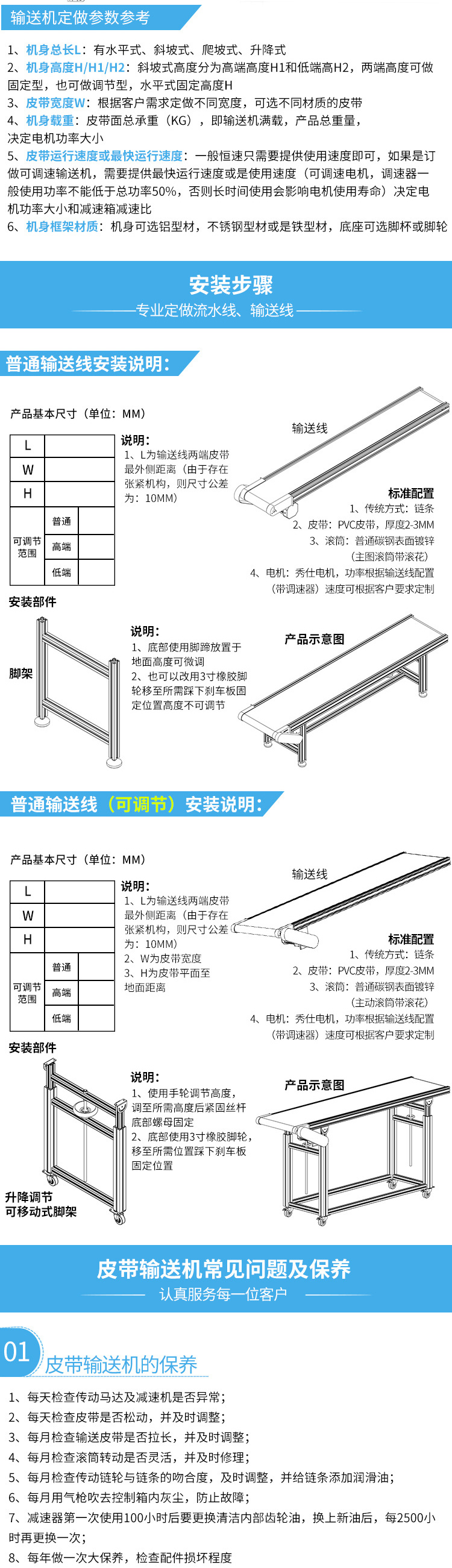 輸送帶:可根據(jù)輸送物料及使用要求采用不同材質(zhì)、類型的輸送帶。