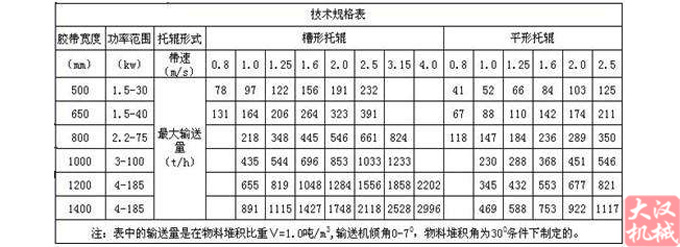 水平皮帶輸送機(jī)按其支架結(jié)構(gòu)有固定式、移動(dòng)式兩種:按輸送帶材料有膠帶、塑料帶和鋼芯帶之分。皮帶輸送機(jī)的工作環(huán)境溫度一般在-10°C--+40°C之間,要求物料溫度不超過(guò)70°C;耐熱橡膠帶可輸送120°C以下的高溫物料。物料溫度更高時(shí)不宜采用膠帶輸送機(jī)。當(dāng)輸送具有酸性堿性油類物質(zhì)和有機(jī)溶劑等成分的物料時(shí),需采用耐油、耐酸堿的橡膠帶式塑料帶。帶式輸送機(jī)的帶寬可分為:500、650、800、1000、1200和1400mm。用戶可根據(jù)帶式輸送機(jī)的輸送長(zhǎng)度,物料的種類、容重、輸送量、輸送長(zhǎng)度等諸因素通過(guò)計(jì)算確定輸送機(jī)的布局以及所選用的膠帶寬度、帆布層數(shù)和膠帶厚度。