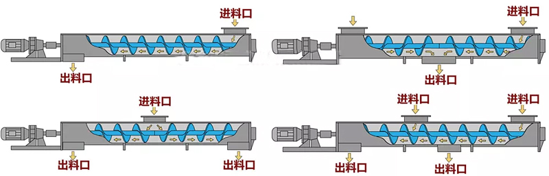 水平螺旋輸送機有多種進料和出料方式,具體的選擇取決于物料的特性、工藝要求以及設(shè)備布局等因素。以下是常見的進料和出料方式:
