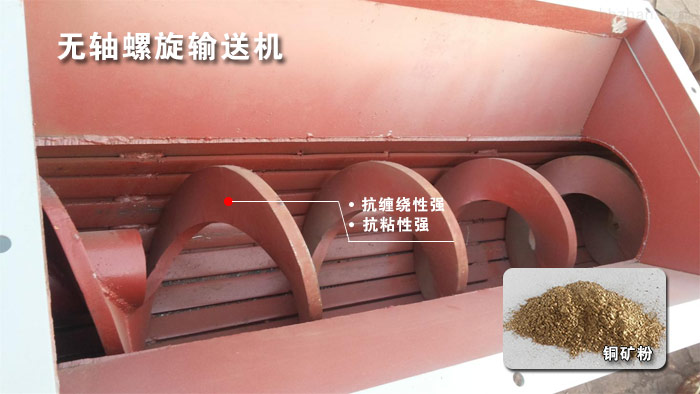 無軸螺旋輸送機(jī)適用于輸送的物料:污泥、生活垃圾、銅礦粉、格柵渣等有粘性,纏繞性物料和塊狀物料,正是因?yàn)闊o軸螺旋輸送機(jī)無中心軸的設(shè)計(jì)對這些物料具有很大的優(yōu)勢。