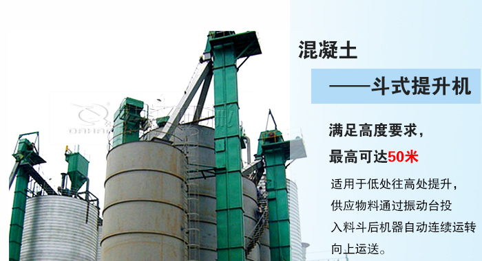 使用斗式提升機(jī)來(lái)完成混凝土的運(yùn)輸工作主要是對(duì)于高度有一定的要求,大漢機(jī)械生產(chǎn)的混凝土斗式提升機(jī)高可達(dá)50米,滿足用戶的高度要求,完成混凝土的輸送工作,斗式提升機(jī)是利用均勻固接于無(wú)端牽引構(gòu)件上的一系列料斗,豎向提升物料的連續(xù)輸送機(jī)械。適用于低處往高處提升,供應(yīng)物料通過(guò)振動(dòng)臺(tái)投入料斗后機(jī)器自動(dòng)連續(xù)運(yùn)轉(zhuǎn)向上運(yùn)送。