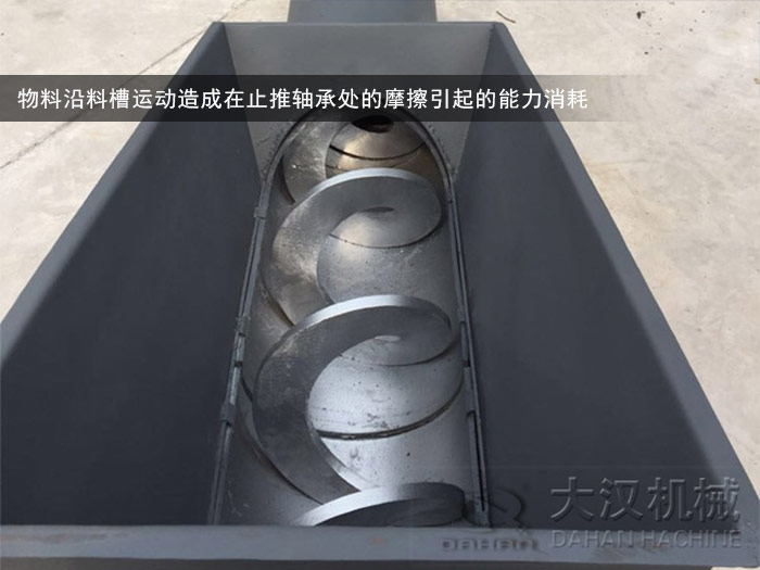 ④螺旋輸送機所輸送的物料沿料槽運動造成在止推軸承處的摩擦引起的能力消耗;