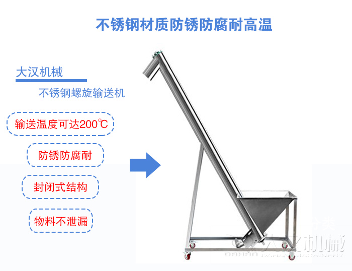大漢機械生產(chǎn)的不銹鋼螺旋輸送機精選304或316等多種等級的不銹鋼,不會對食品產(chǎn)生污染或是腐蝕等安全問題,不銹鋼螺旋輸送機廣泛應用于各個食品(如:咖啡粉)行業(yè),屬于食品及專用的機械設備材質。