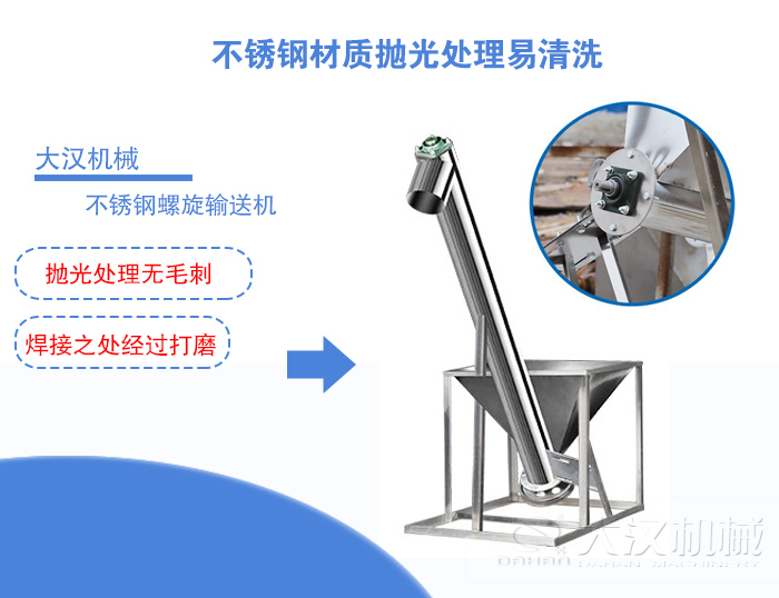 在食品行業(yè)的對于機械設備的選用有著嚴格的衛(wèi)生要求,大漢生產(chǎn)的不銹鋼螺旋輸送機整機經(jīng)過嚴格的拋光處理無毛刺,焊接之處也經(jīng)過打磨而成,這樣就能夠保證物料不會因為殘留物,而出現(xiàn)腐壞的現(xiàn)象,在清理方面也是非常的容易,所以不銹鋼螺旋輸送機相比普通碳鋼材質的螺旋輸送機更耐用。