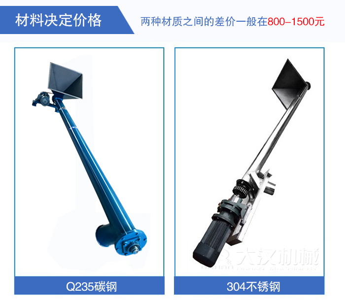 螺旋輸送機(jī)殼體有Q235碳鋼,304不銹鋼,這兩個之間的差價一般在800-1500元。另外,選擇不同配件價格也會不同,舉例來說,采用普通電機(jī)的輸送機(jī)價格比防爆電機(jī)的輸送機(jī)價格便宜,所以用戶在選擇時需要結(jié)合自身情況。