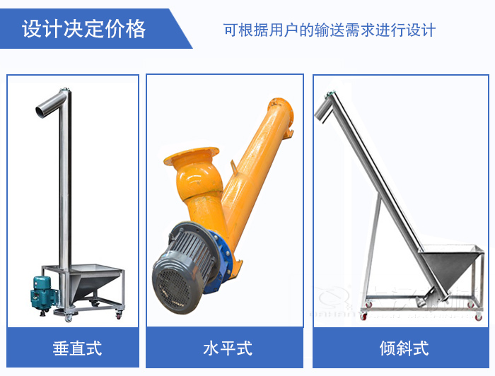 螺旋輸送機(jī)根據(jù)用戶的要求可以設(shè)計成垂直式的、水平式、傾斜式的,可根據(jù)用戶的輸送需求進(jìn)行設(shè)計,由于設(shè)計與產(chǎn)品的制造工藝有關(guān),每個廠家對于螺旋輸送機(jī)的工藝不同,這就決定了螺旋輸送機(jī)價格的高低。