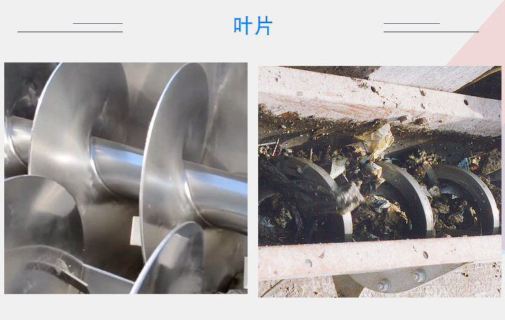不同性質(zhì)的物料對螺旋輸送機的葉片形狀、材質(zhì)有不同的要求。針對一般物料,可選擇碳鋼材質(zhì)的有軸葉片,對于一些粘性大,纏繞性物流,就需要選擇無軸螺旋葉片,對衛(wèi)生環(huán)境有要求的物料,葉片一般建議選擇不銹鋼材質(zhì),磨琢性強的物料則要選擇錳鋼材質(zhì)的葉片。