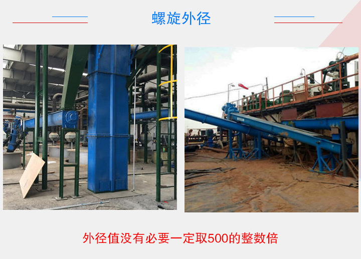 在相關(guān)參數(shù)穩(wěn)定的情況下,物料在料槽內(nèi)軸向移動速度和圓周速度隨物料所在螺旋半徑的增大而增大。在選取螺旋輸送機的時候根據(jù)物料特質(zhì)選擇葉片和旋轉(zhuǎn)軸,直徑越大,效果越好,但是對于開式螺旋輸送機,如果螺旋外徑過大,就會增加其制造成本,且不利于冷卻。此外,外徑值沒有必要一定取500的整數(shù)倍。