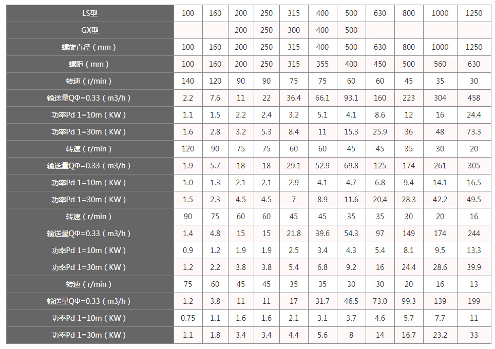 附 螺旋給料機參數(shù)表: